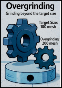 Dampak negatif overgrinding terhadap proses metalurgi sangat signifikan, termasuk penurunan pemulihan mineral karena partikel halus menarik ke permukaan mineral berharga melalui daya tarik elektrostatik, sehingga mengganggu flotasi. Selain itu, produksi slime meningkatkan kesulitan penanganan slurry, menyebabkan kehilangan nilai logam ke tailing dan peningkatan biaya dewatering. Overgrinding juga memboroskan energi, di mana grinding halus menyumbang sebagian besar anggaran energi pabrik, sementara mengurangi produktivitas keseluruhan. Dalam bijih kompleks seperti PGMs, overgrinding dalam sirkuit MF2 atau MF3 dapat menghasilkan partikel yang tidak dapat dipulihkan secara efisien, memengaruhi selektivitas pemisahan. Akhirnya, fenomena ini berkontribusi pada penurunan keberlanjutan industri pertambangan karena peningkatan limbah dan konsumsi sumber daya.
